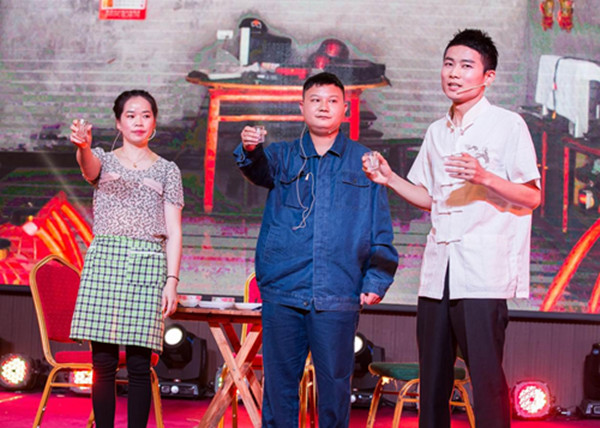 上图为机关干部表演的小型花鼓戏《“两学一做”谱新篇》