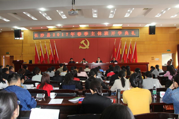 4月17日,长沙县2017年春季主体班在县委党校开班。此次春季主体培训班有意识形态专题培训班、党外中青年干部培训班和女干部培训班。来自全县各镇(街)、县直机关39名女干部参加了女干部素质提升培训班。县委副书记、统战部长、县委党校校长杨莉出席开班典礼并作动员讲话,县委常委、宣传部长杨溢主持会议。